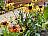 Neben den beiden Hochbeeten werden noch bunte Spätsommerblumen an den neuen Zaun gepflanzt und ans kleine rote Haus kommt ein schickes Spalier. Das soll schon im nächsten Jahr von den zwei Weinstöcken, die heute ebenfalls gesetzt wurden, dicht umrankt werden. Vielleicht gibt es dann sogar schon die erste Traubenernte.
