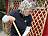 Lukas Böttcher steht auf der Ladefläche unseres Transporters und schaufelt, was das Zeug hält ... der große Berg mit Mulch aus Blättern, Rinde und Zweigen hat schon beträchtlich abgenommen. Während sich Alexander Kaufmann die volle Karre schnappt und sie in Richtung Hochbeet schiebt, kann Lukas einen kleinen Moment verschnaufen und schaut zum „großen Werkeln“ beim kleinen roten Haus hinüber. Hier, im Garten des Mütterzentrums in Salzgitter-Bad, wächst gerade ein hübsches Gartenparadies. Zwei große Hochbeete stehen schon, sie werden mit besagtem Mulch befüllt. Später werden hier Blumen wachsen, die das Mütterzentrum für schöne Deko nutzen will. Direkt daneben fliegen die Funken: Piotr Latkowski, einer unserer Handwerker aus dem Regiebetrieb, flext die überstehenden Schrauben unten am neuen Zaun fachmännisch weg. Und auch alle anderen packen ordentlich mit an: