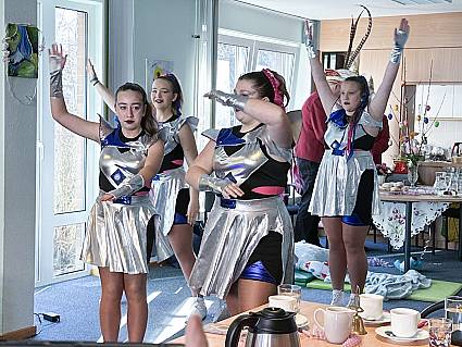 Schon beim Einzug der Karnevalsfreunde war die Stimmung ausgelassen. Die Gäste des Wohnbau-Treffs klatschten begeistert mit und ließen sich von der Energie der Tänzerinnen und Tänzer anstecken. Neben akrobatischen Kunststücken und schwungvollen Choreografien sorgten vor allem die musikalischen Darbietungen für strahlende Gesichter im Publikum.
